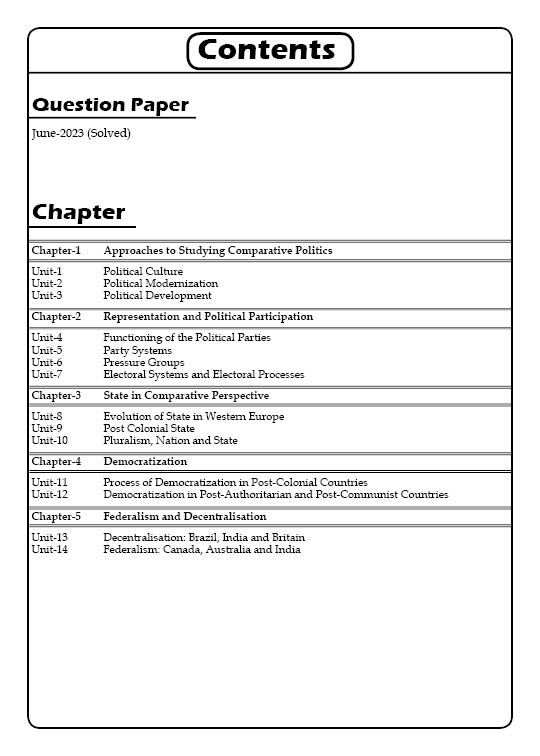 Many experts thought that you should read the IGNOU Study Material before taking any IGNOU Exam. IGNOU Study Material should be the first thing the student looks at, even if they use other resources. Therefore, we made IGNOU BPSC-109 Study Material with important questions and answers so that you can easily find what you need. This is the best IGNOU BPSC-109 Guide Book for you in a way that is clear. You can get all the information you need in this help book and it is very easy to find. Units and Blocks are well explained in this BPSC-109 Study Material, and the language is simple so that you can understand it better. Overall, buy this IGNOU BPSC-109 Help Book titled Political Processes and Institutions in Comparative Perspective from us and get the best help for your term end examination or assignment from us.