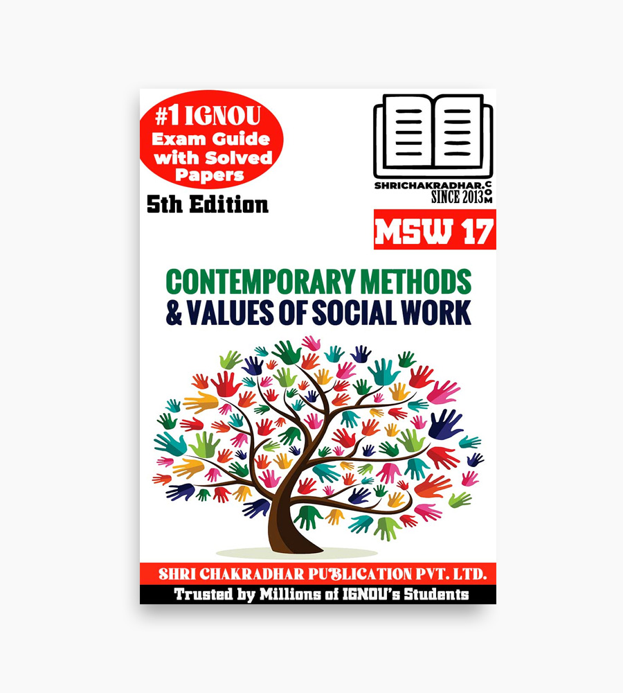 IGNOU gives study materials to all of its students. However, IGNOU Study Material is hard because they have many long, detailed lessons that are hard to remember. As a result, we made this Chapter-wise help book with Solved Question Papers based on the IGNOU MSW. A look at IGNOU MSW-17 Previous Year Solved Questions Paper gives you an idea of what kind of questions you will see in MSW-17 Exams. Student can learn about the paper pattern and question forms that will be used in exams by reading this Guide Book. IGNOU MSW-17 Study Material titled Contemporary Methods and Values of Social Work is the best way for you to improve your exam preparation. You can get it from us @50% Off Discounted Price, and it will help you do better in your IGNOU Exams.